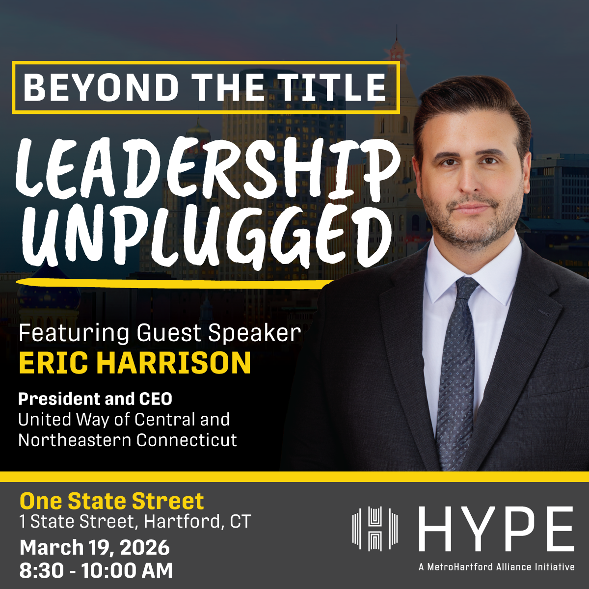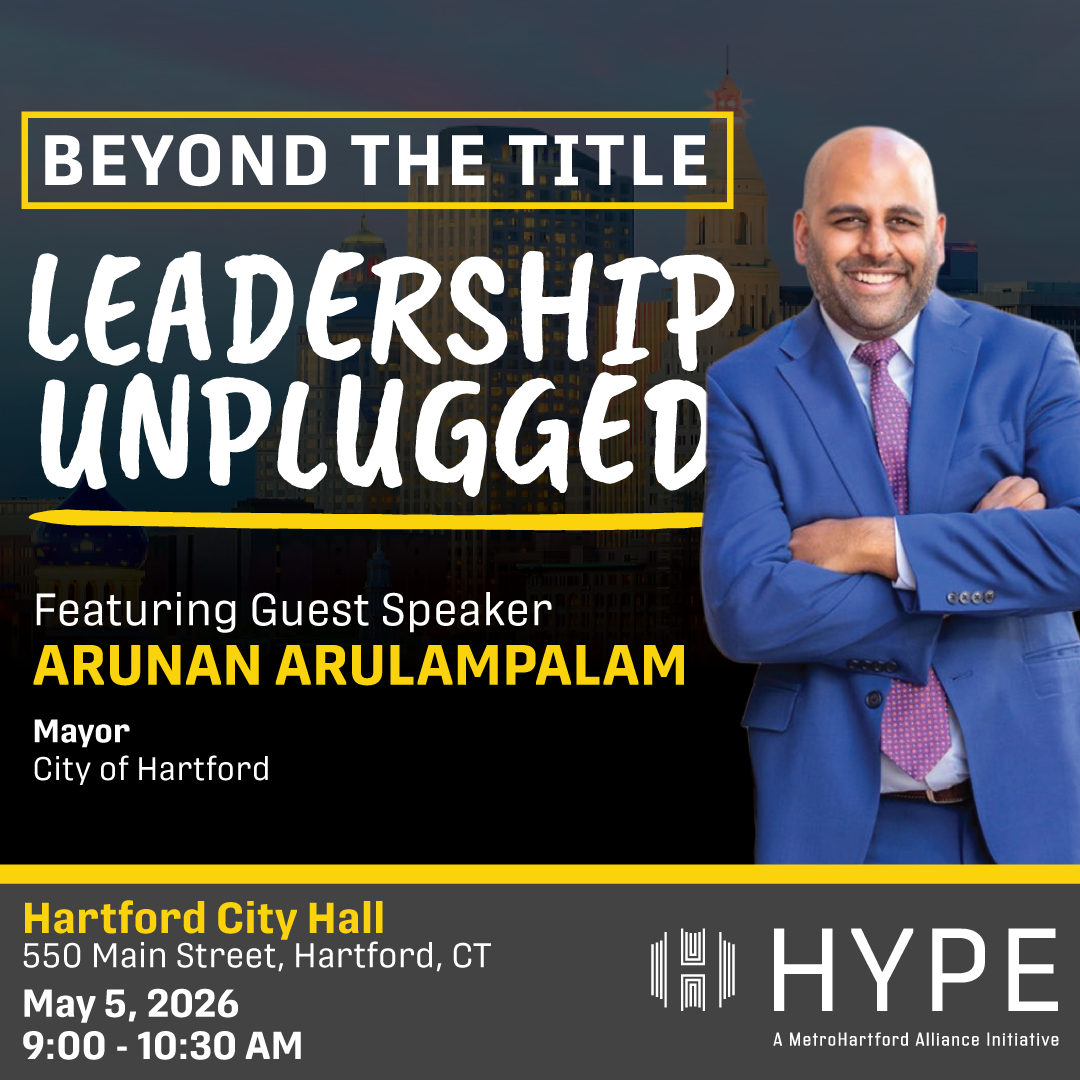 We’re HYPED to announce our newest series, Beyond the Title: Leadership Unplugged — an opportunity for young professionals to gain real access to the leaders shaping the Hartford region through candid, small-group conversations.